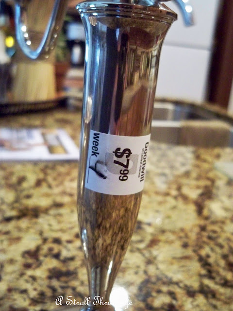 Since I've found so many wonderful silver items lately at Goodwill, Thrift stores and Sales, I just had to play and create a new Dining table display. Everything on this table is way under $10 and so much fun.