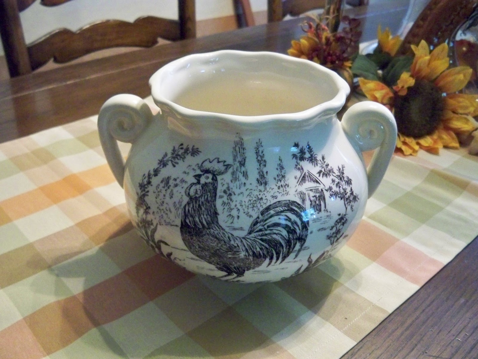 Instead of using my new rooster cache pot for a plant, I thought I would put some of my cooking utensils in it and place it near the stove, so they are easy to reach when I need them.